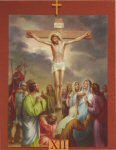 At the foot of the Cross stands his Mother, Mary, with other holy women. Jesus looks at her; then he looks at the disciple whom he loves, and he says to his Mother: Woman, behold they son. Then he says to the disciple: Behold thy mother (John 19:26-27).