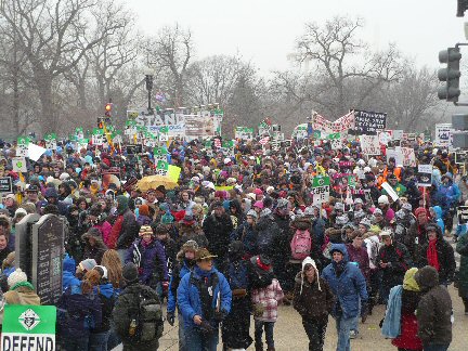 More than 500,000 thousand marchers braved the snow and winter temperature in the low 20s to publicly profess their conviction that the life of the unborn child is sacred and therefore has value.